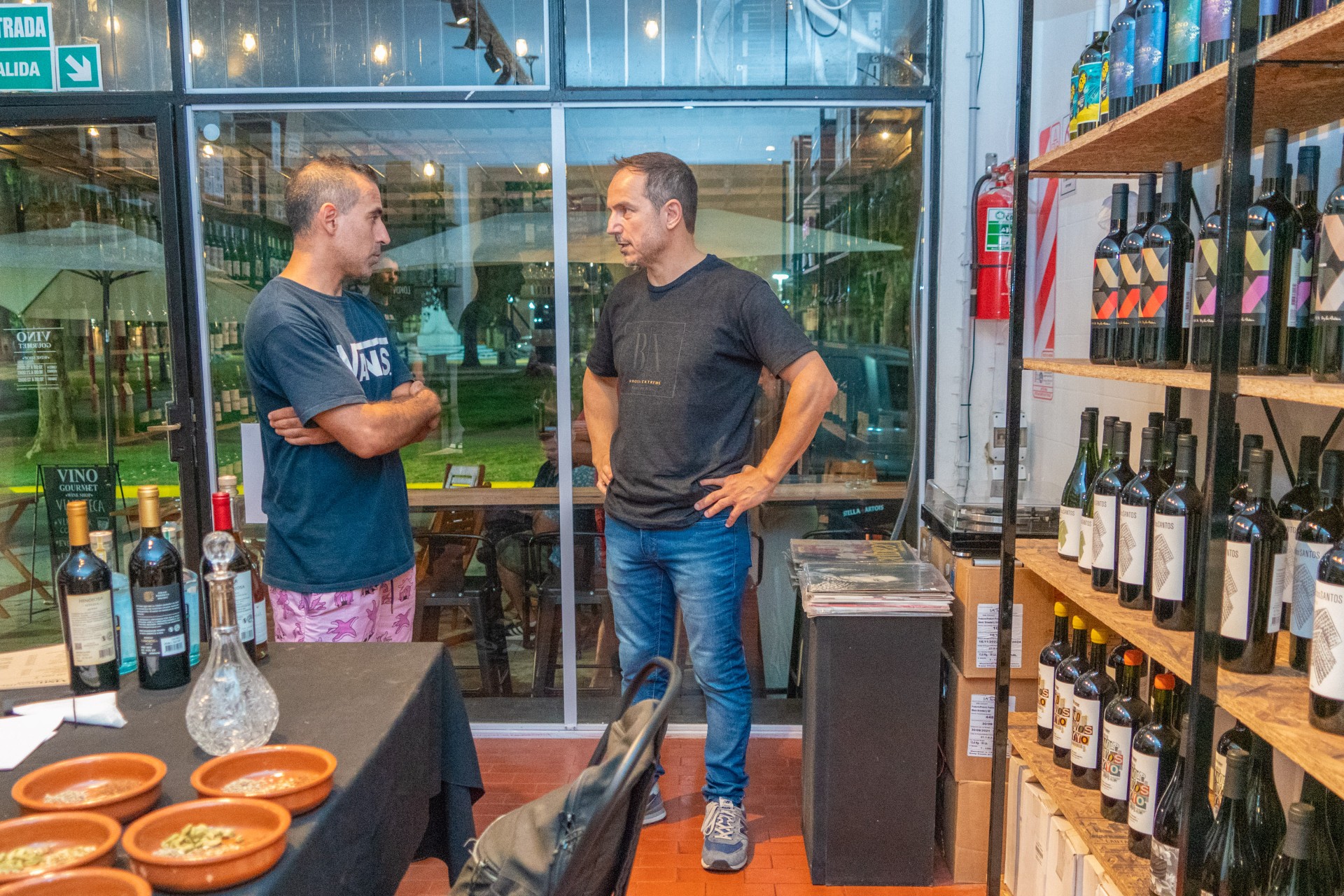 En el comercio ubicado en Almirante Brown 594 (ubicado frente a la plaza Italia), el jefe comunal se interiorizó en la historia del comercio que surgió a mediados del 2024, cuando el sommelier Martín Aguayo se asoció con su mejor amigo, Ezequiel Salomón, ingeniero y vecino de Campana, para hacer realidad el sueño de traer a la ciudad marcas de vinos boutique que no se encuentran habitualmente en el mercado.