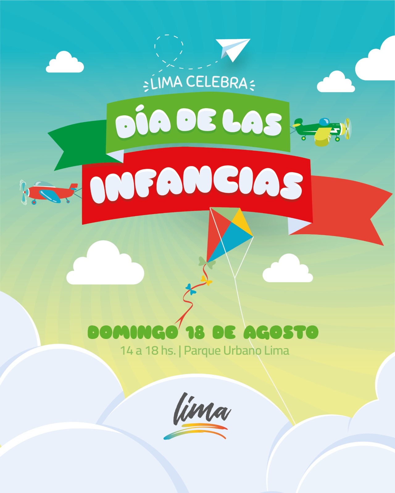 En el marco del Día de las Infancias se realizará una jornada dedicada a los más pequeños. Será el domingo 18 de agosto de 14 a 18 hs en el Parque Urbano de Lima y contará con kermesse, juegos inflables, como así también un show musical de Aladdín y de Latin Love.