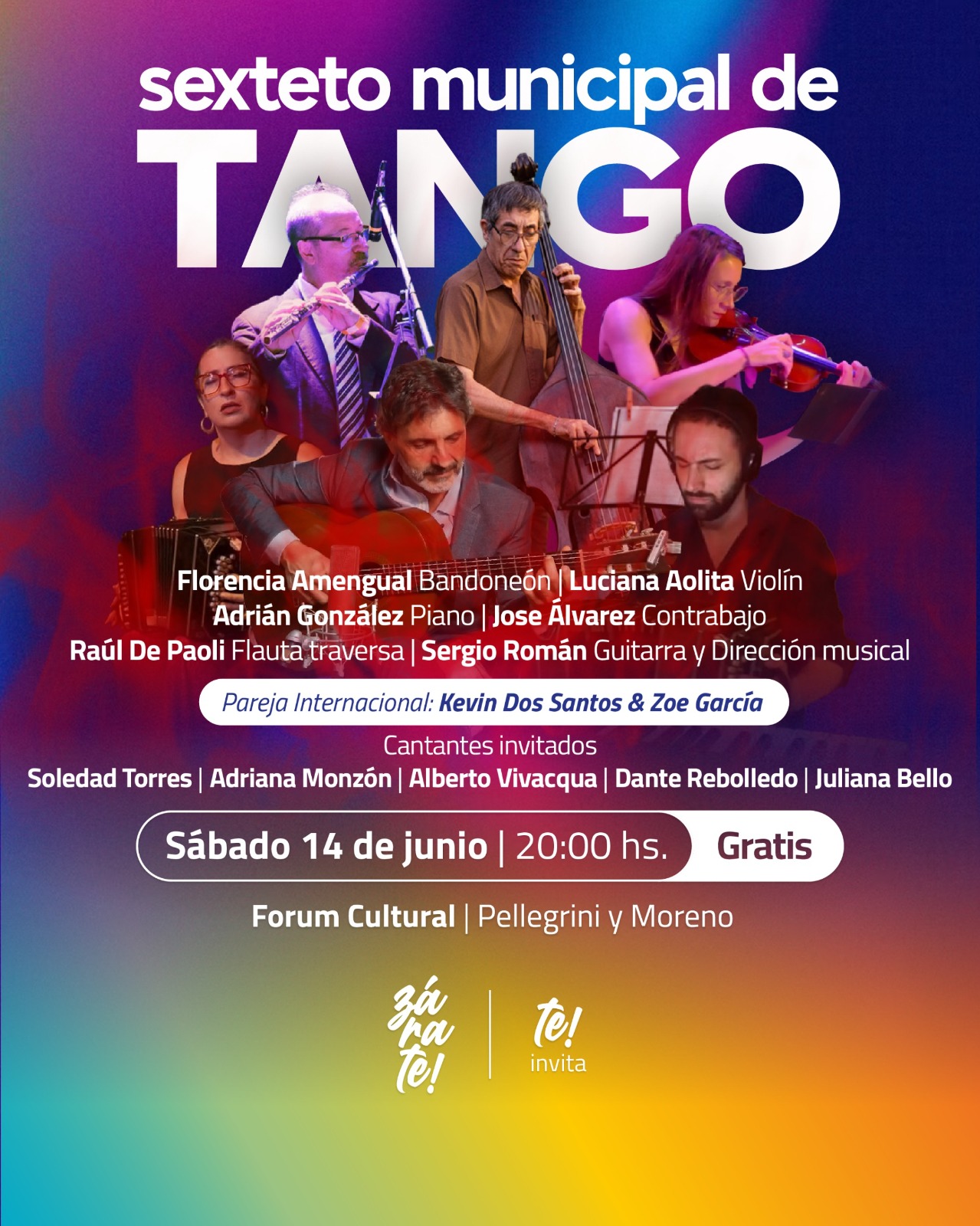 Un espectáculo con entrada libre y gratuita que también contará con la presencia de la pareja internacional integrada por Kevin Dos Santos y Zoe García y los siguientes cantantes invitados: Soledad Torres, Adriana Monzón. Alberto Vivacqua, dante Rebolledo y Juliana Bello.