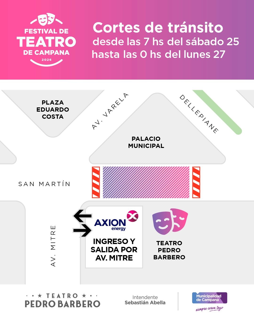 Además, el ingreso y egreso a la estación de servicio Axion Energy estará habilitado únicamente por Av. Mitre.