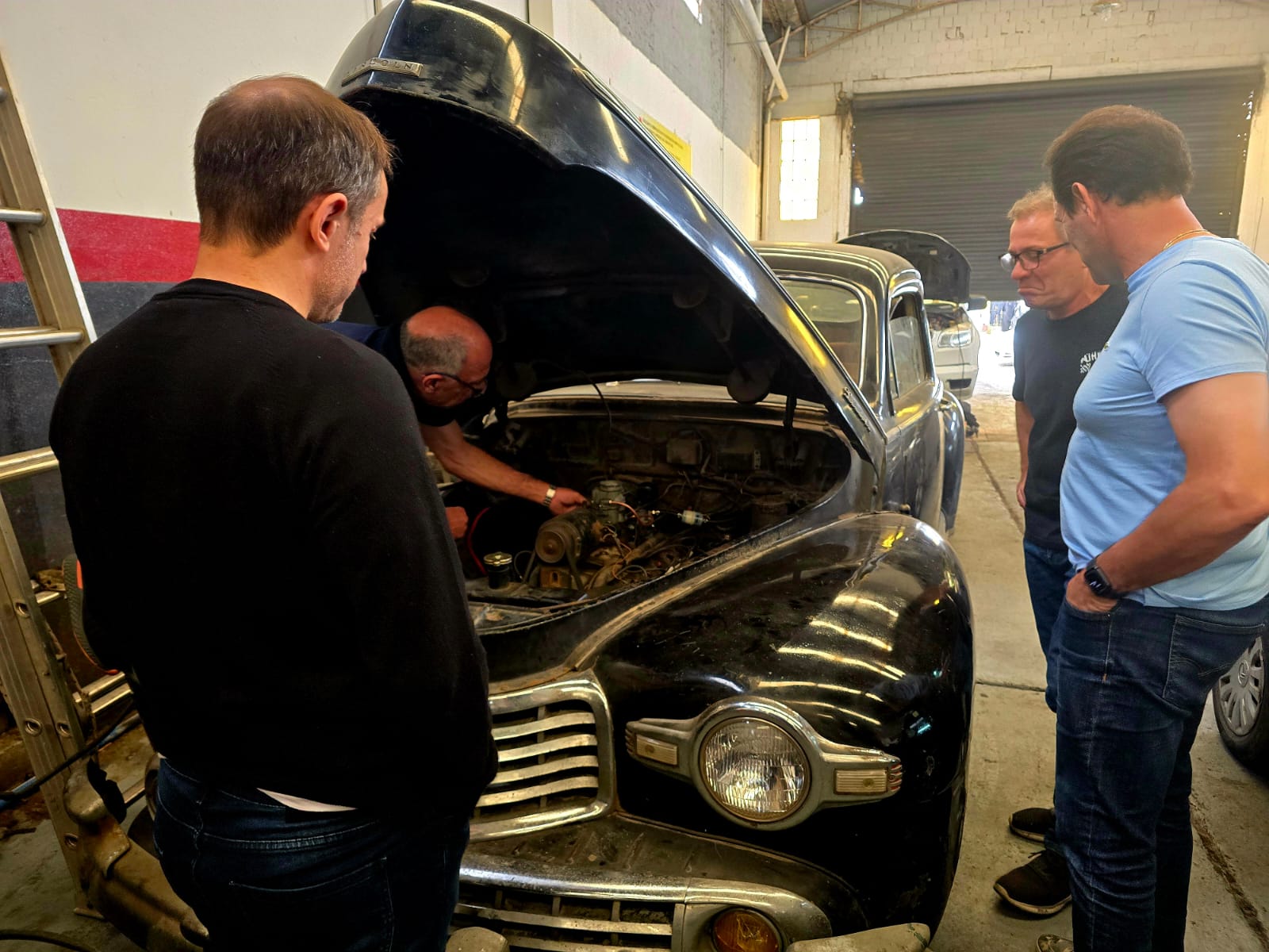 Además, aprovecharon la ocasión para conocer en detalle y probar los vehículos de colección que forman parte de la familia y conservan en el taller.