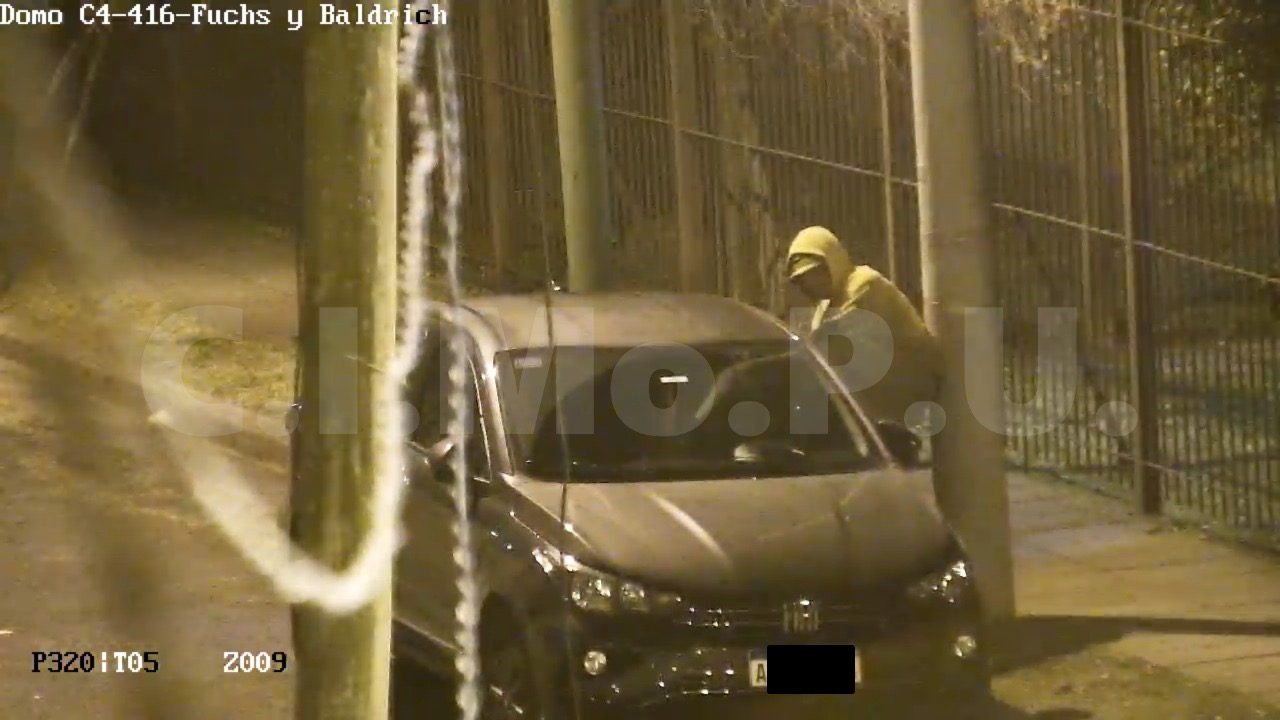 Con la experiencia y precisión que caracteriza su labor, los operadores comenzaron un seguimiento minucioso utilizando las cámaras de toda la zona. La secuencia mostró cómo, al llegar a las inmediaciones de Fuchs y Baldrich, uno de los sujetos forzó el ingreso a un vehículo por la ventanilla y comenzó a revolver en su interior en busca de pertenencias.