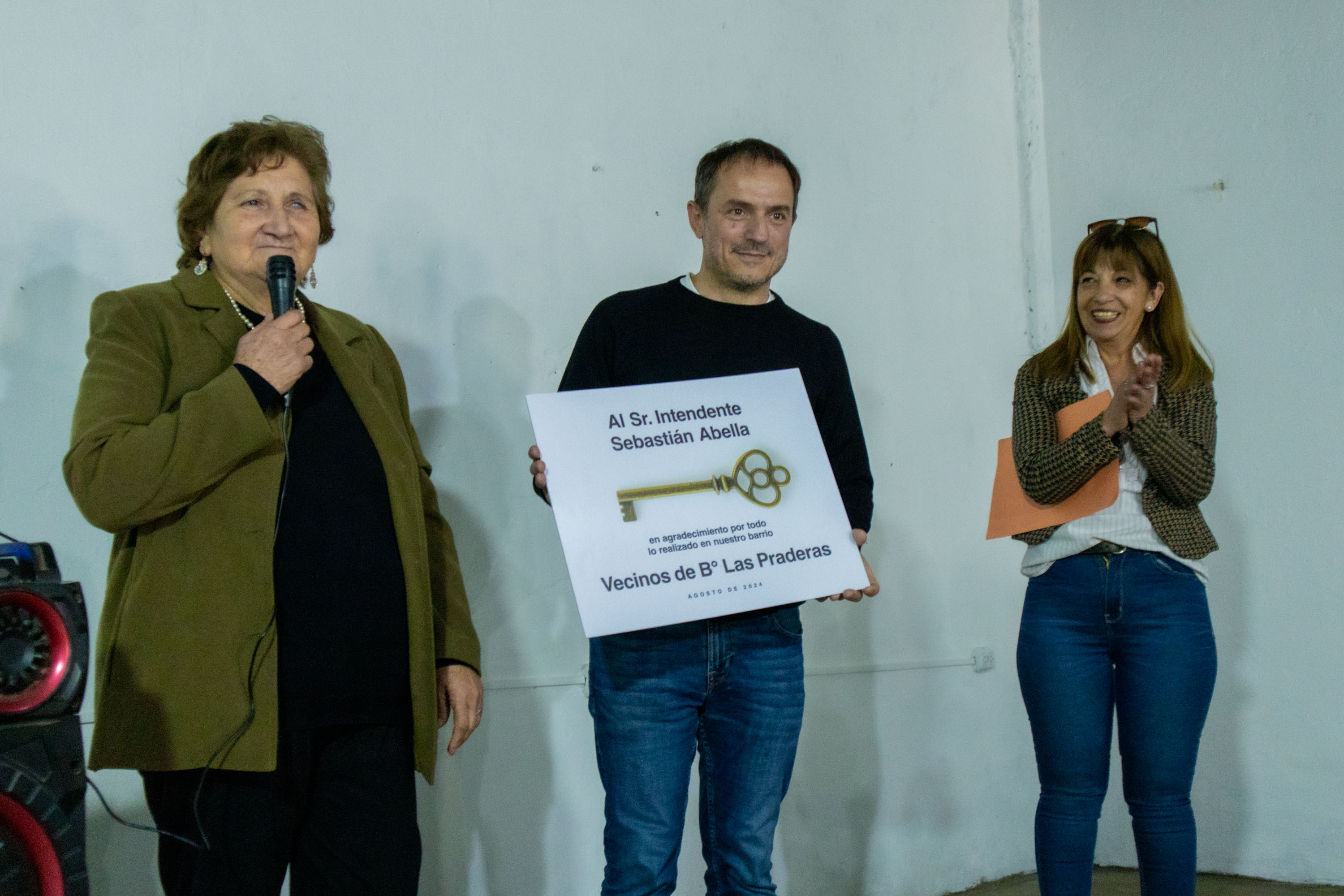 Durante el evento desarrollado en la sociedad de fomento, los vecinos le entregaron “la llave del barrio” en reconocimiento a la transformación concretada en Las Praderas.