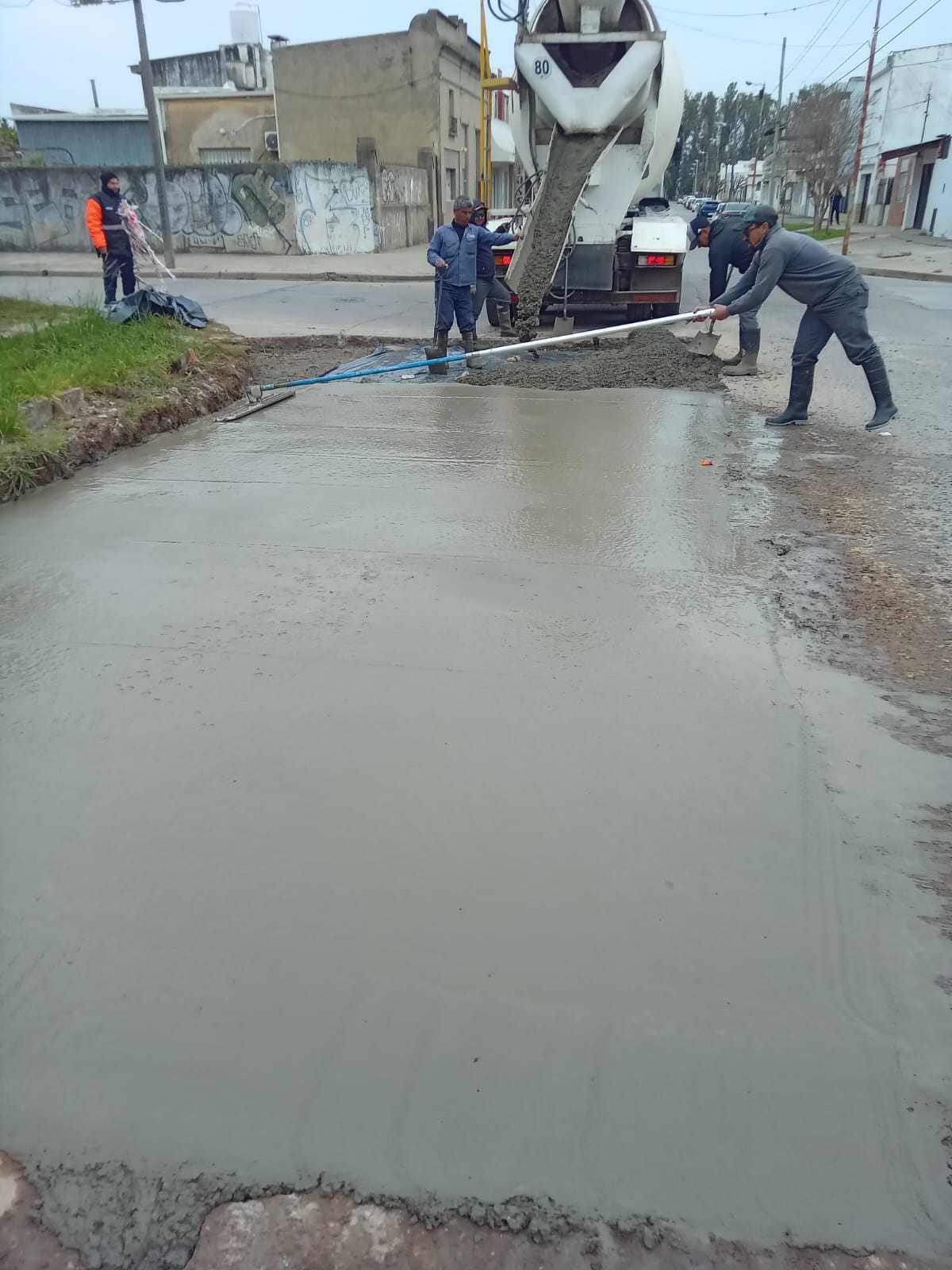Asimismo, cuadrillas municipales trabajaron en la limpieza y reparación de calles del barrio María Auxiliadora, entre las que se incluyen: Güemes, Valentín Alsina, Calle 44 y 46. Y se hizo bacheo de hormigón en las calles Cuyo y Suipacha del barrio 12 de Octubre.