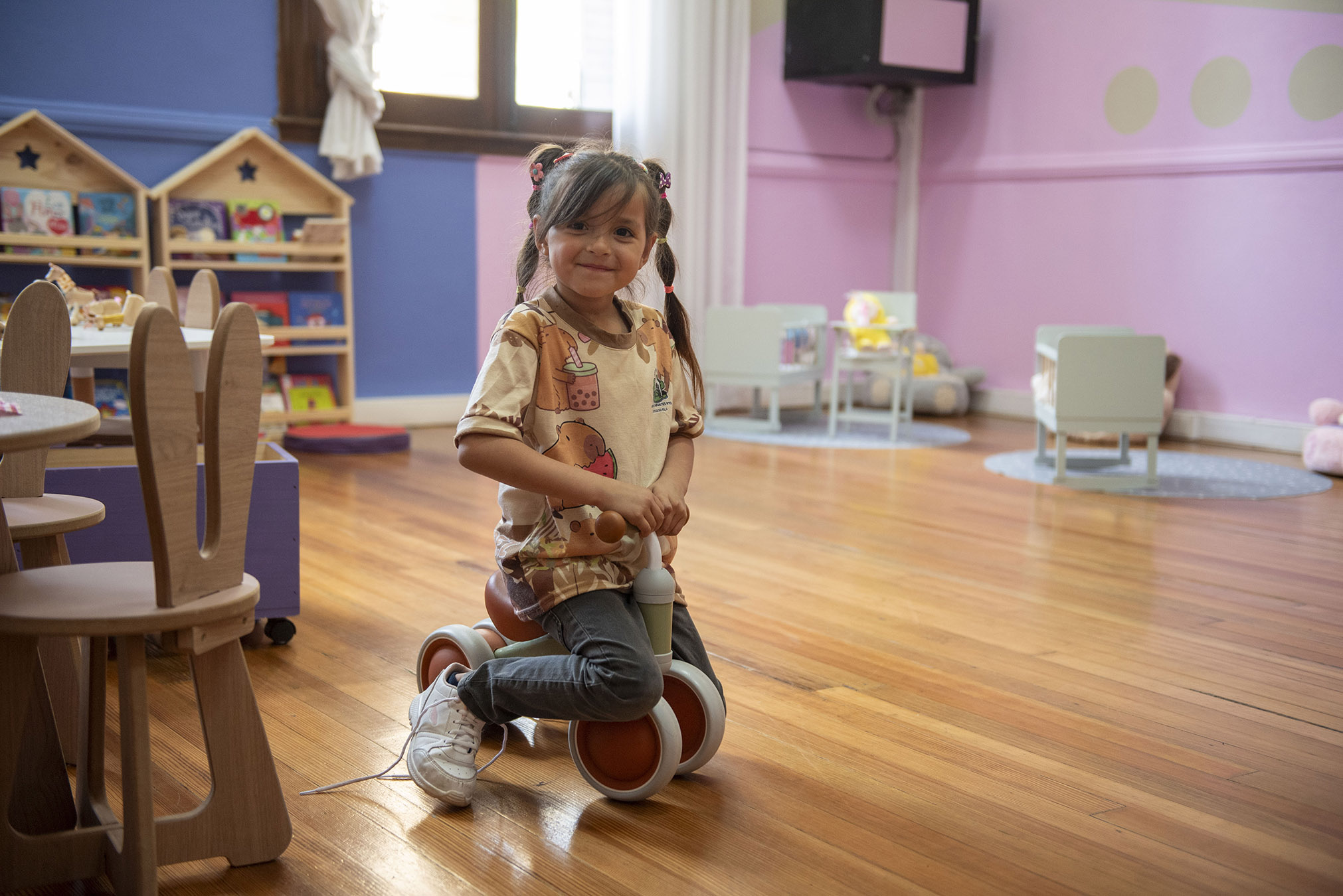 Durante la visita, los pequeños pudieron experimentar y compartir actividades en las dos salas especialmente preparadas con equipamiento que invitan a divertirse y aprender. Juegos de cocina, herramientas y supermercado, además de peloteros, triciclos, toboganes y libros son algunos de ellos que despiertan en cada visita mucho entusiasmo y alegría.