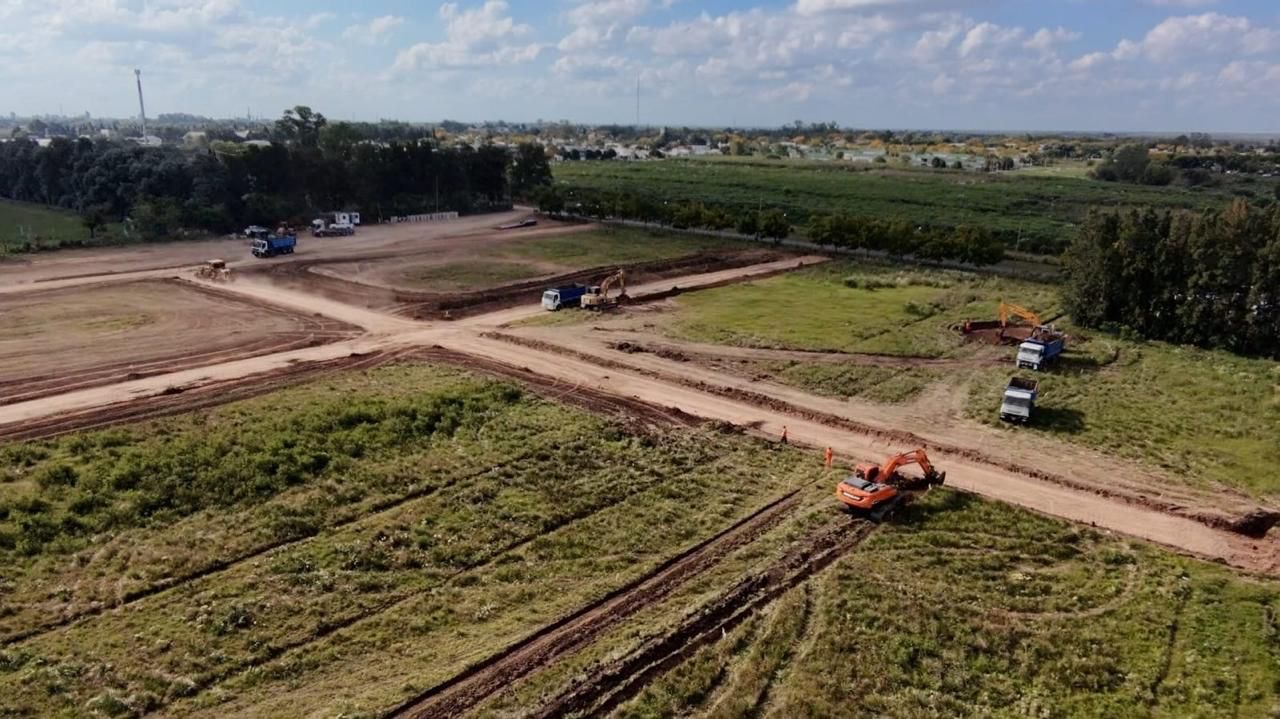 El movimiento en Justina ya se empieza a sentir: las máquinas están trabajando en la apertura de calles y la nivelación del terreno, pasos clave para la instalación de los desagües y entubados que forman parte de la infraestructura del proyecto.