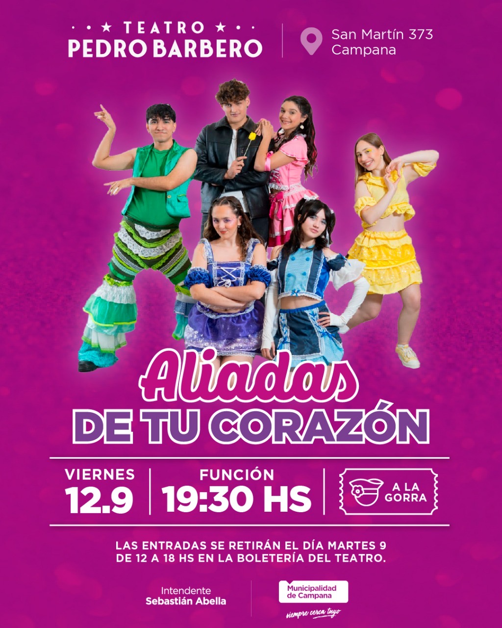 El viernes 12, 19:30 horas, en tanto, subirá al escenario “Aliadas de tu corazón” protagonizada por el Taller Municipal de Teatro y Comedia Musical a cargo del profesor Gustavo Dappiano. Bajo la modalidad “a la gorra”, las entradas se entregarán a partir del martes 9 en la boletería del teatro situado en San Martín 373, de 12 a 18 horas.