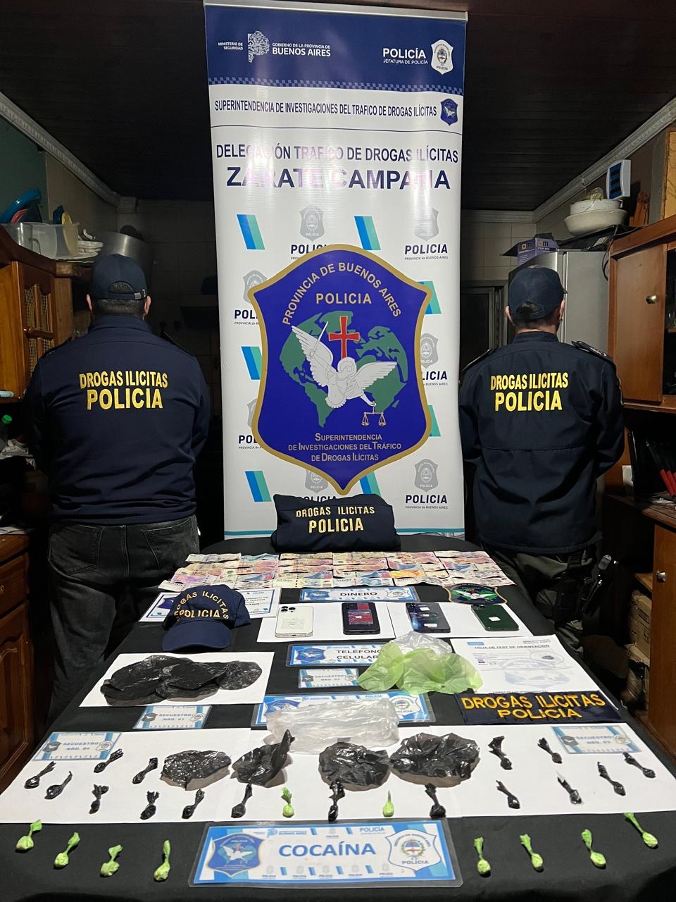 En estos allanamientos se secuestraron 30 envoltorios con dosis fraccionadas de cocaína, teléfonos celulares, dinero en efectivo y elementos de corte y fraccionamiento.