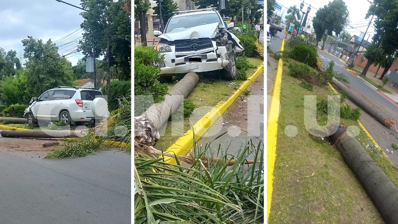 Un conductor, que circulaba en dirección al centro, perdió el control de su vehículo y terminó impactando contra el parterre central, derribando dos palmeras.