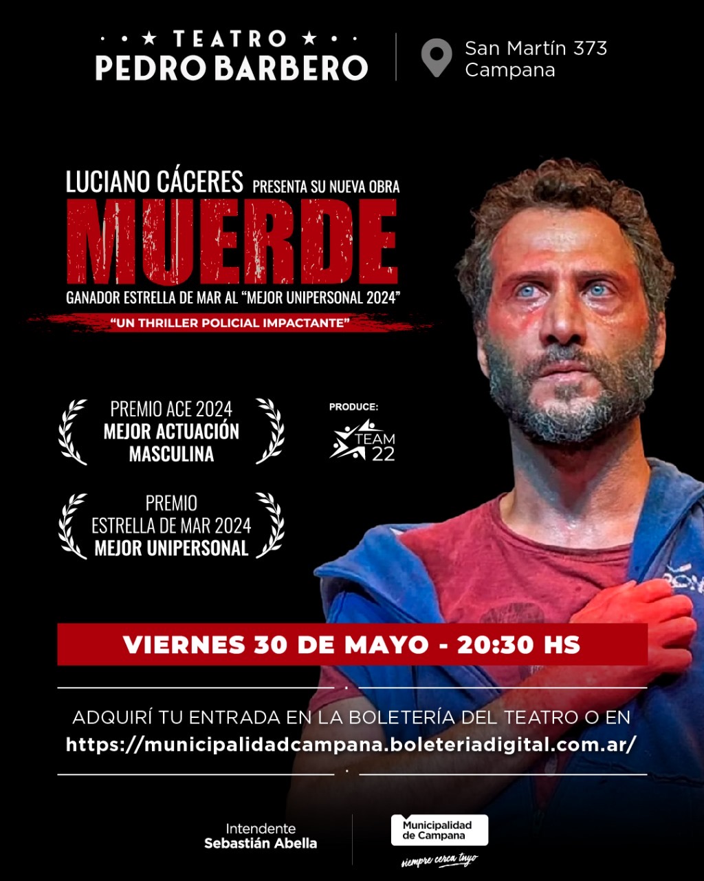 Teatro Pedro Barbero en Campana: este viernes se presenta la obra de Luciano Cáceres