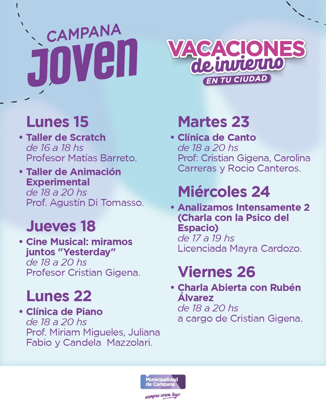 Campana Joven también suma propuestas gratuitas para las vacaciones de invierno