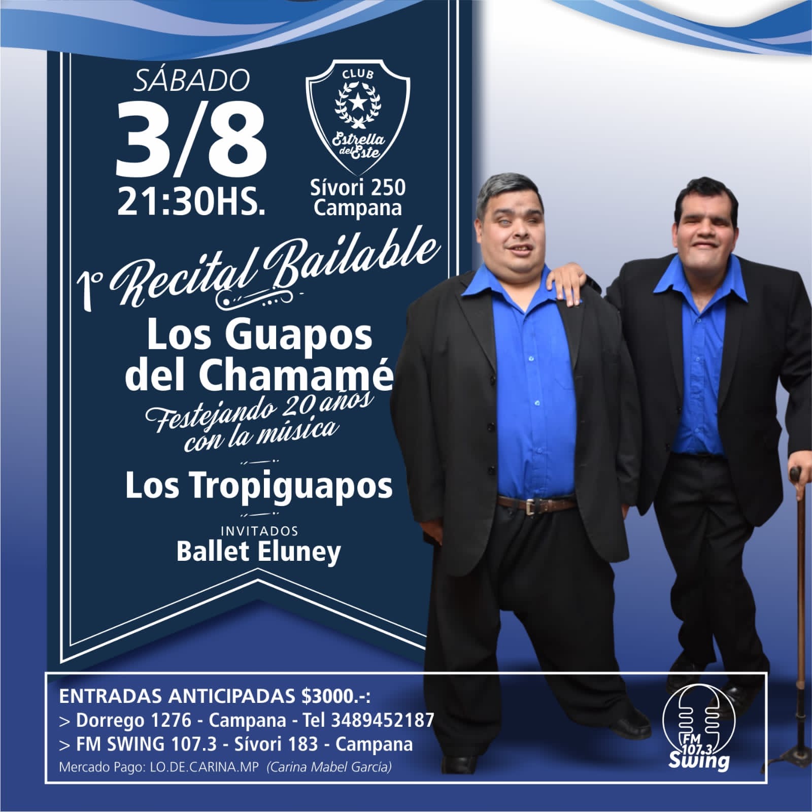 El próximo sábado 3 de agosto, a las 21:30 horas, se llevará a cabo el primer recital bailable en el Club Estrella del Este, ubicado en Sívori 250, Campana.